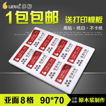LOPAL/乐标a4不干胶标签打印纸办公贴纸书写切割激光8格亚面/亮光面90*70 100*70 9格60*90