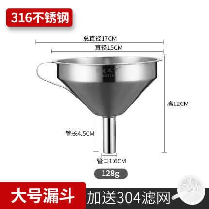 漏斗家用316不锈钢厨房大小号口径白酒葡萄酒漏带过滤网304油漏斗