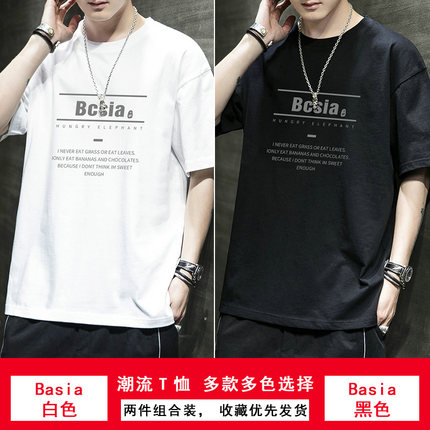 南极人夏季男士短袖t恤潮流潮牌宽松纯棉衣服2020新款青年体恤男 Basis深灰+Basis黑