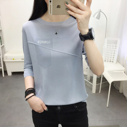 冰丝t恤女2020新款圆领宽松短袖针织衫洋气韩版亮丝字母中袖上衣