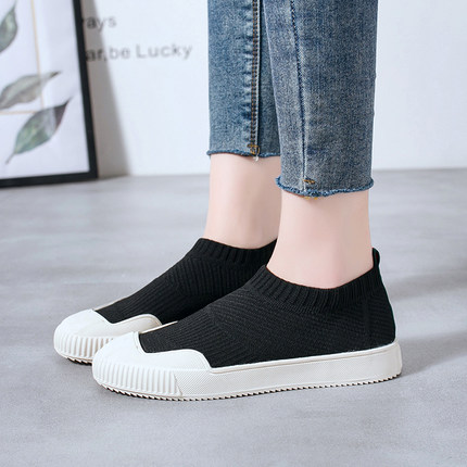 单鞋女春夏新款韩版网面透气飞织袜子鞋一脚蹬懒人平底休闲板鞋潮