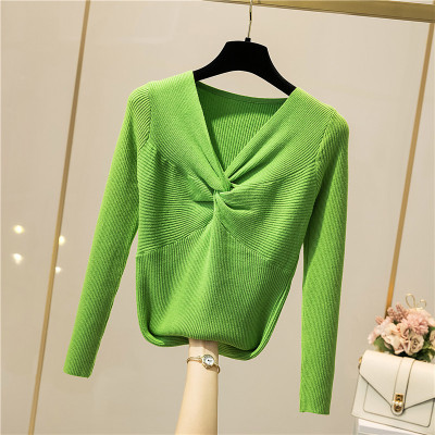 性感交叉V领修身针织衫2020新款韩版长袖上衣秋冬套头打底毛衣女