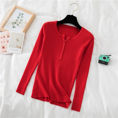秋装女V领套头针织打底衫学生显瘦长袖T恤chic紧身上衣内搭毛衣潮