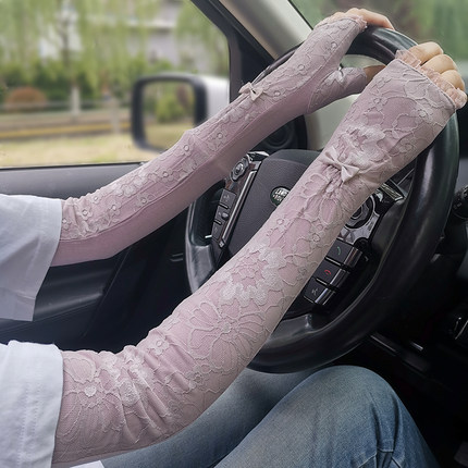 长款防晒手袖弹力护臂冰蕾丝ins手套女薄夏天防紫外线袖套手臂套