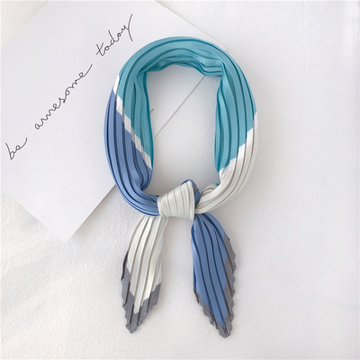 实物更美~百褶小方巾春夏秋新款小丝巾百搭印花菱形小领巾头巾女
