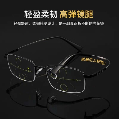 2019新款防蓝光老花镜 记忆钛半框方形老花镜 高清树脂防辐射眼