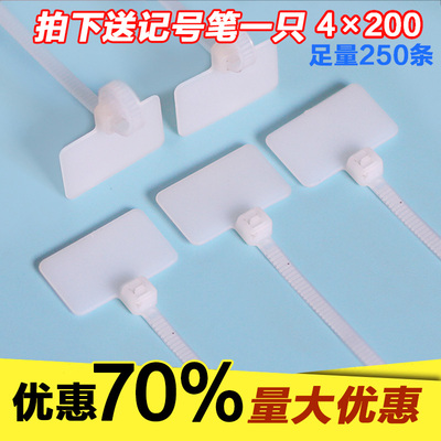 白色标牌尼龙扎带4*200mm标签扎带吊牌结束带网线电线固定扎带3.0