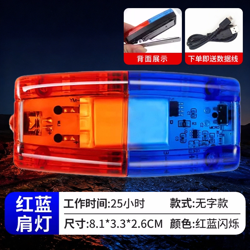 警示爆闪灯肩夹安全车尾灯自行车充电保安红蓝LED肩灯闪光信号灯