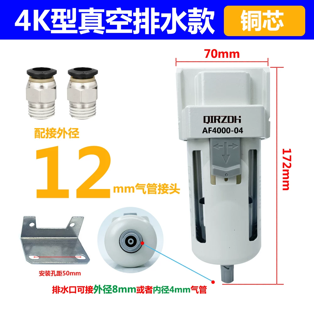 小型真空负压过滤器真空泵气管空气油水分离器AF2000-02带支架铜AF4K排水款铜芯+支架+接12mm气管接头