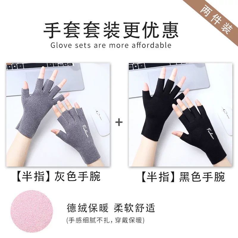 半指手套女冬季2025新款天德绒防寒薄款五指半截露指学生写字保暖