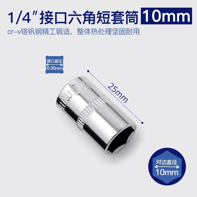 1/4小飞套筒10/8/14/5.5mm套筒头内六角套头工具套装棘轮快速扳手
