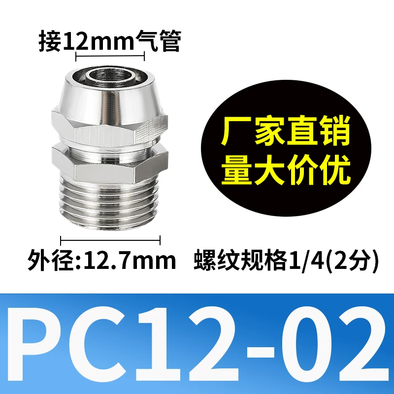 铜镀镍快拧接头PC8-02锁母气动气管直通快速6/10/12/14/16mm0134