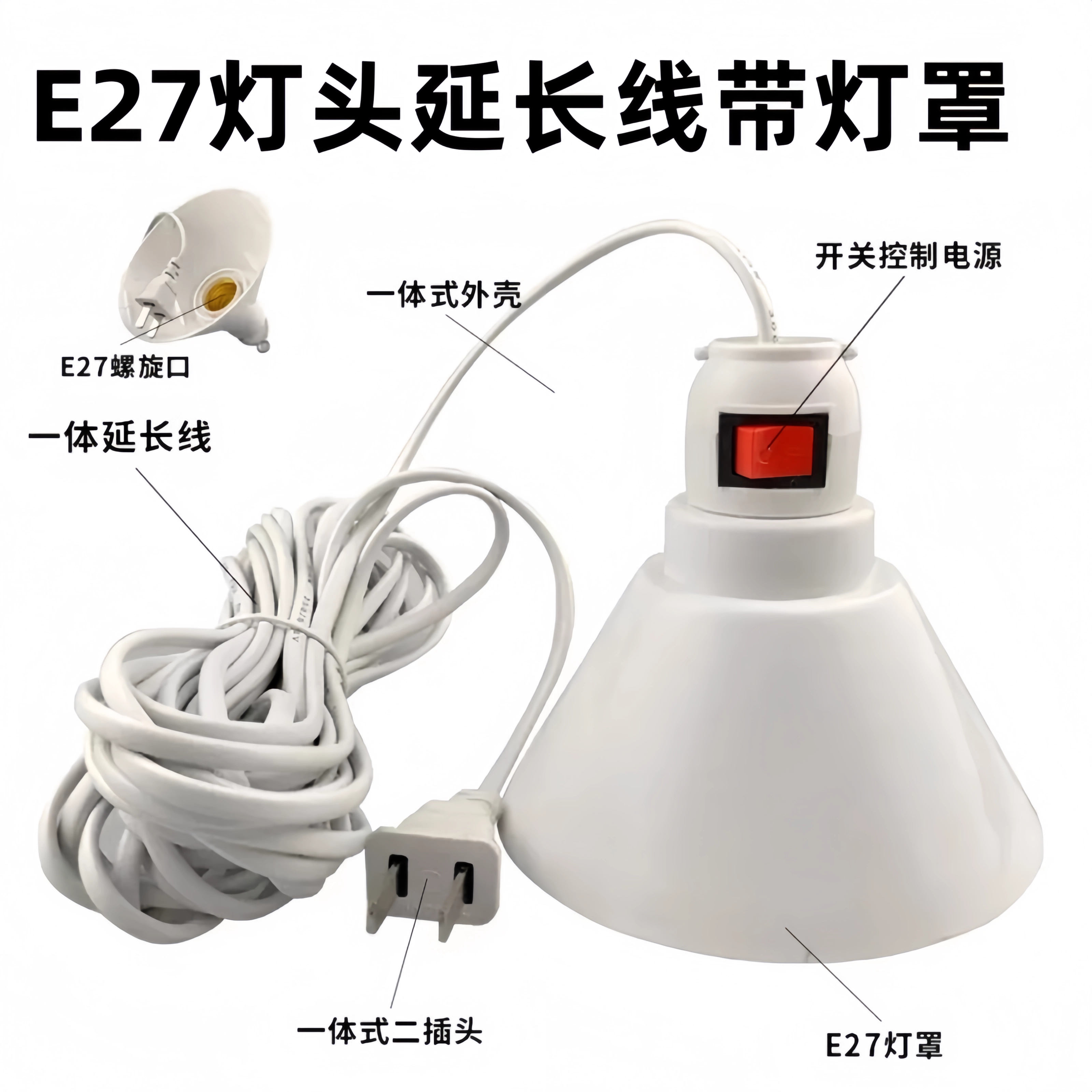 家用灯罩E27螺口灯头罩节能电灯泡吊悬挂式灯座线带开关插头线