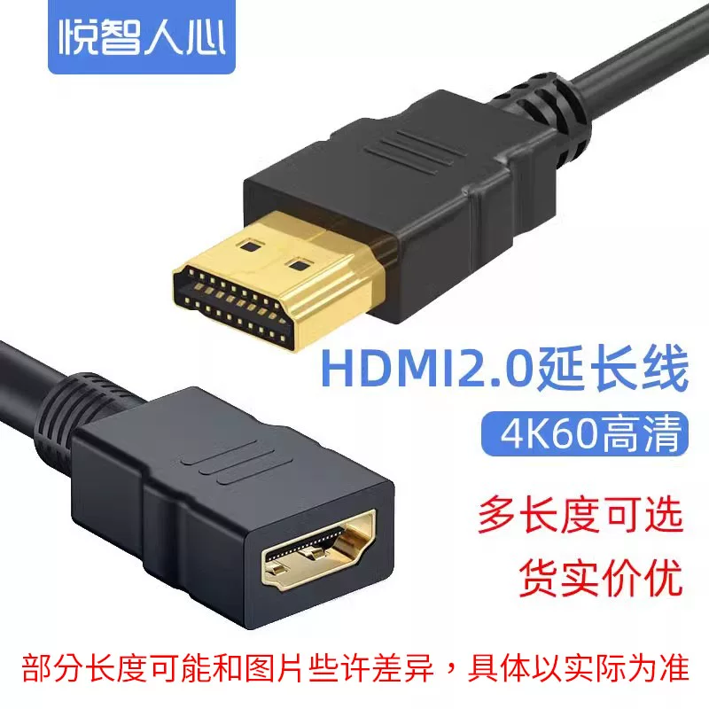 悦智人心HDMI延长线2.1版公对母4K高清笔记本电视显示器连接转换