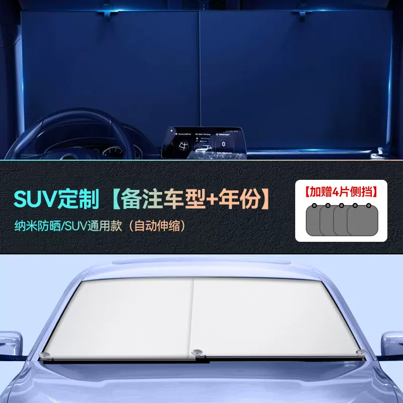 汽车遮阳帘车窗防晒隔热遮阳挡前挡风玻璃车载车用自动伸缩遮阳板 [交易快照] 颜色分类:升级加厚【纳米防晒款】SUV定制★全遮0透光+送4片侧挡车型:本田 CR-V2.0L 2004 2.0 自动 i