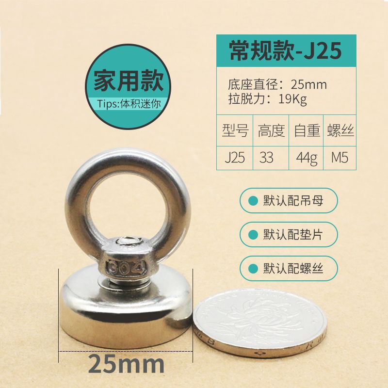 强力磁铁强磁打捞神器超强钕铁硼吸铁石高强度圆形打捞磁铁吊环