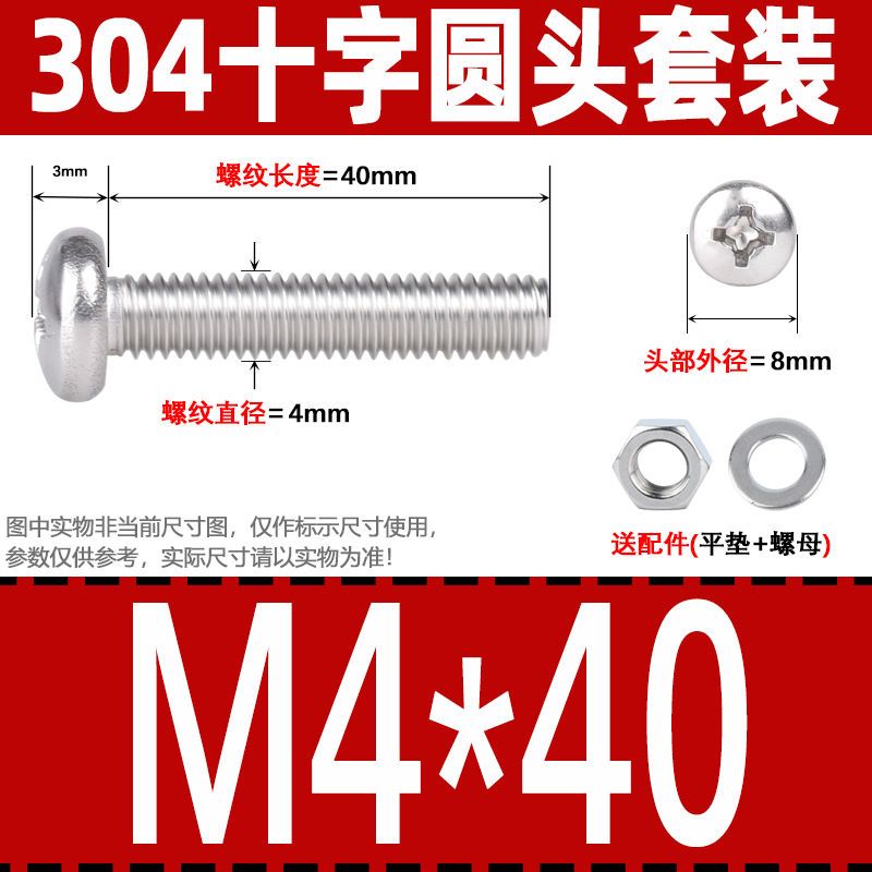 M3M4M5M6 304不锈钢十字圆头螺丝螺母套装大全盘头组合螺栓螺丝钉