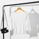 2019新款早春T恤上衣女春装喇叭袖百搭白色针织衫七分袖打底衫潮