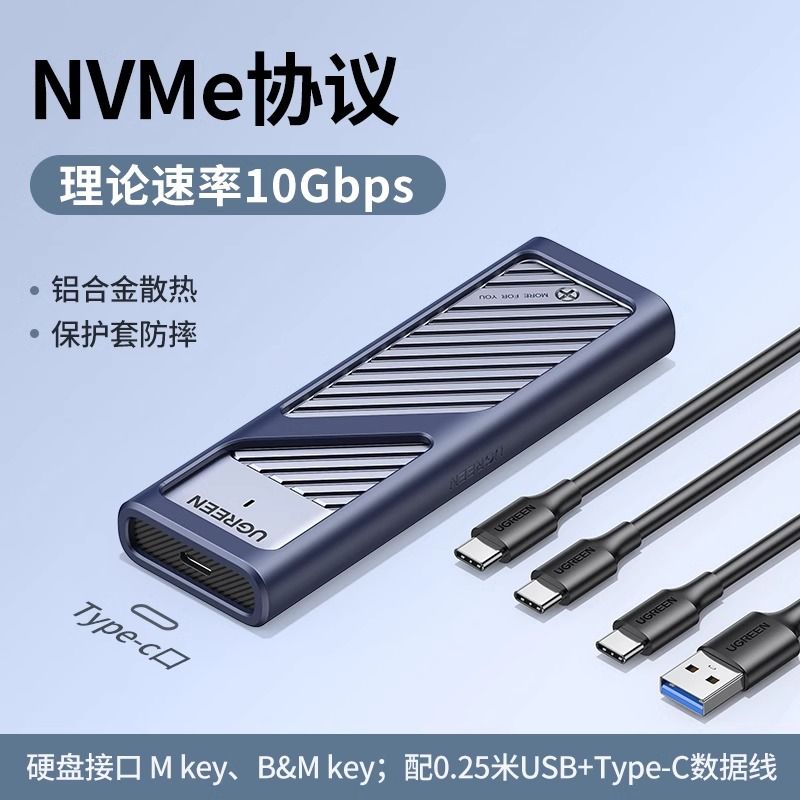 绿联M.2NVMe/SATA双协议硬盘盒Type-C/USB3.2外置移动SSD硬盘盒子