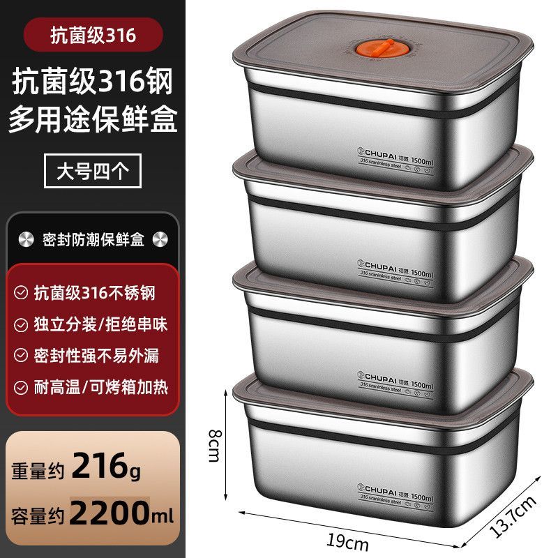 【新店福利】不锈钢食品级密封盖长方形野餐便携盒储物冰箱保鲜盒