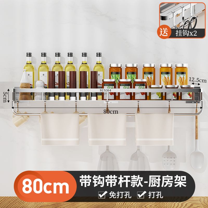304不锈钢厨房架子加厚置物架壁挂式免打孔调料架油盐酱醋收纳架