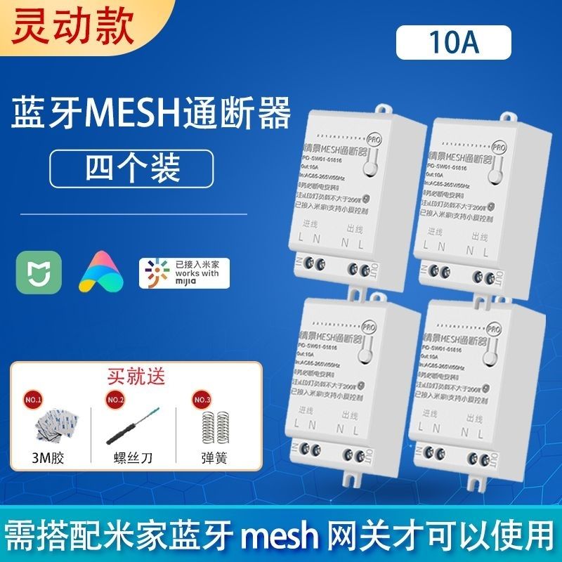 已接入米家干接点蓝牙mesh通断器二路四路车库门低压直流交流供电