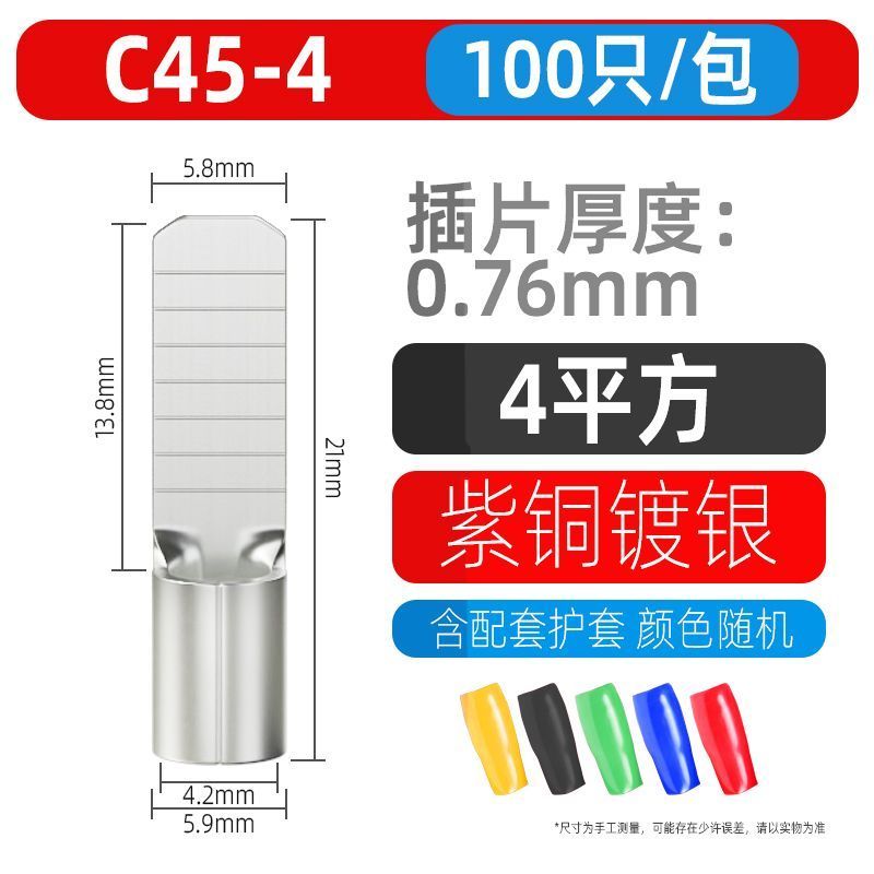 C45空气开关插针插片冷压接线端子铜鼻子线耳断路器接线紫铜镀银
