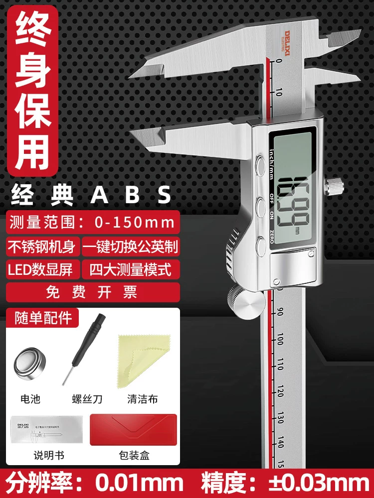 德力西电子游标卡尺高精度数显工业级小型文玩家用高深度油标卡尺