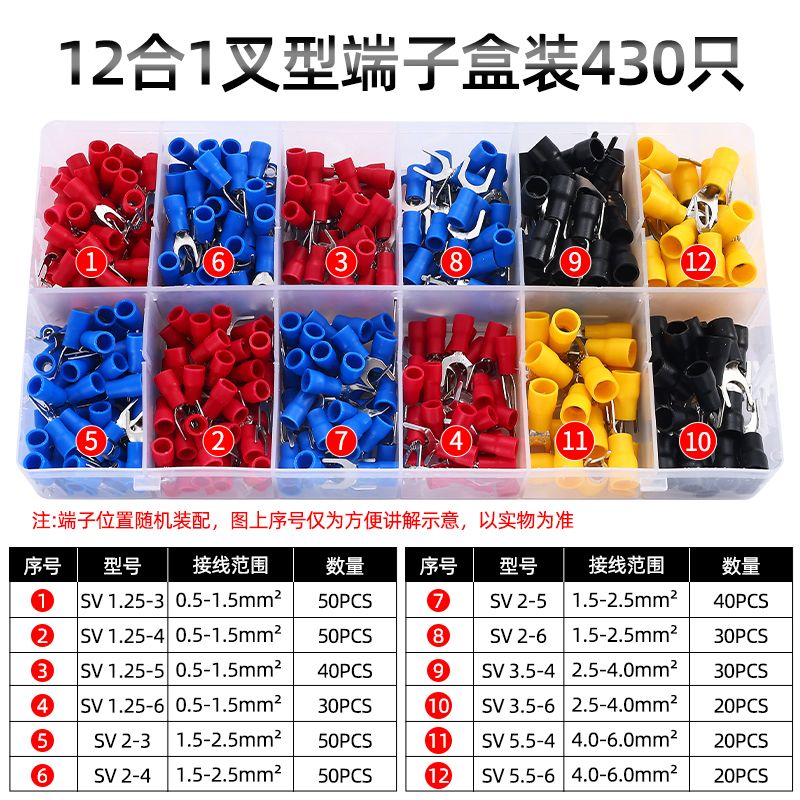 sv预绝缘叉型冷压端子电线U形接头接线端子铜鼻子线耳DIY组合套装