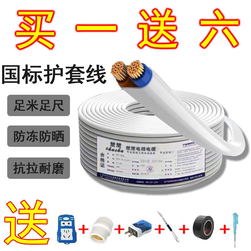 拍一送六】国标电线白护套双芯1.5/2.5/4/6平方防冻家用电缆外贸