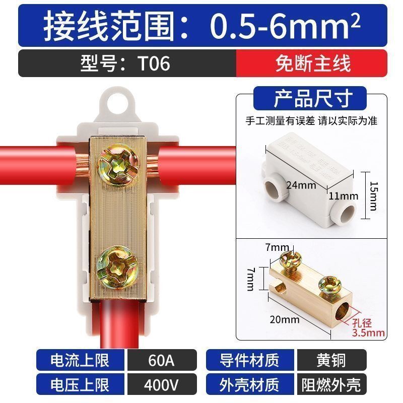 丅型接线端子大功率黄铜端子分线器分支接头分流接口三通电线端子