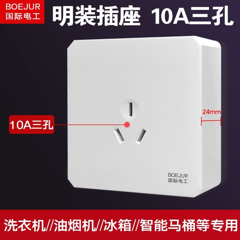 国际电工10A三孔明装批发洗衣机插座冰箱专用大功率油烟机插座10a