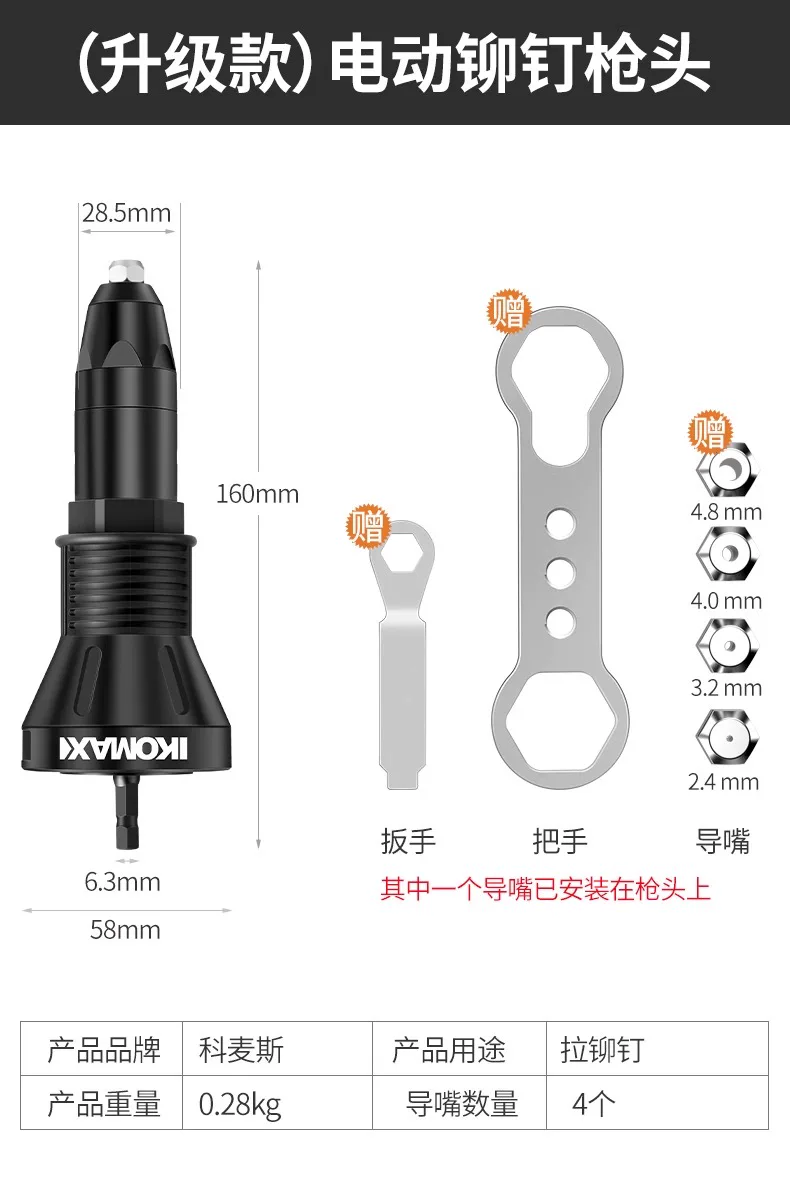 科麦斯电动铆钉枪拉铆枪柳钉钉铆拉抽芯拉铆转换头抢拉钉拉卯枪头
