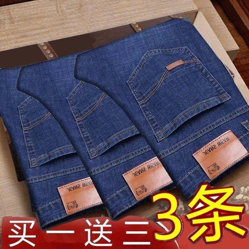 秋冬厚款男士牛仔裤男装弹力休闲宽松直筒工作干活男裤