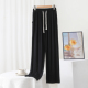 清仓捡漏~冰丝休闲阔腿裤女夏季薄款高腰垂感褶皱慵懒风直筒裤子 [交易快照] 颜色分类:黑色尺码:M