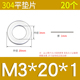 不锈钢垫片加大厚圆形介子平垫圈 [交易快照] 颜色分类:M3*20*1 (20个)