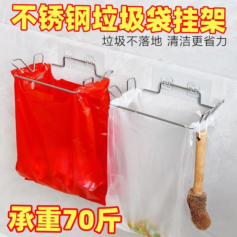 不锈钢垃圾架挂墙垃圾桶厨房墙上垃圾桶不弯腰垃圾架毛巾垃圾袋架