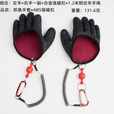 摘鱼抓鱼手套防刺防水海钓钓鱼专用路亚装备取鱼防割防滑摘鱼防扎 [交易快照] 颜色分类:左手+右手+磁力扣+1.2米失手绳