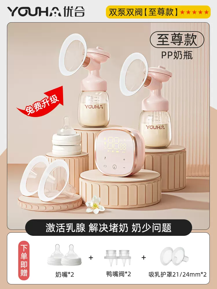 优合双泵双控吸奶器电动无痛按摩 [交易快照] 颜色分类:【至尊款-进口PP奶瓶】双泵双阀/左右独立调档+5模50档+两种尺寸护罩款式:电动式