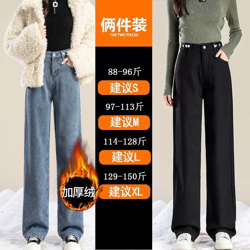 加绒加厚高腰宽松直筒 [交易快照] 颜色分类:复古蓝【加绒款】+黑色【加绒款】尺寸:S