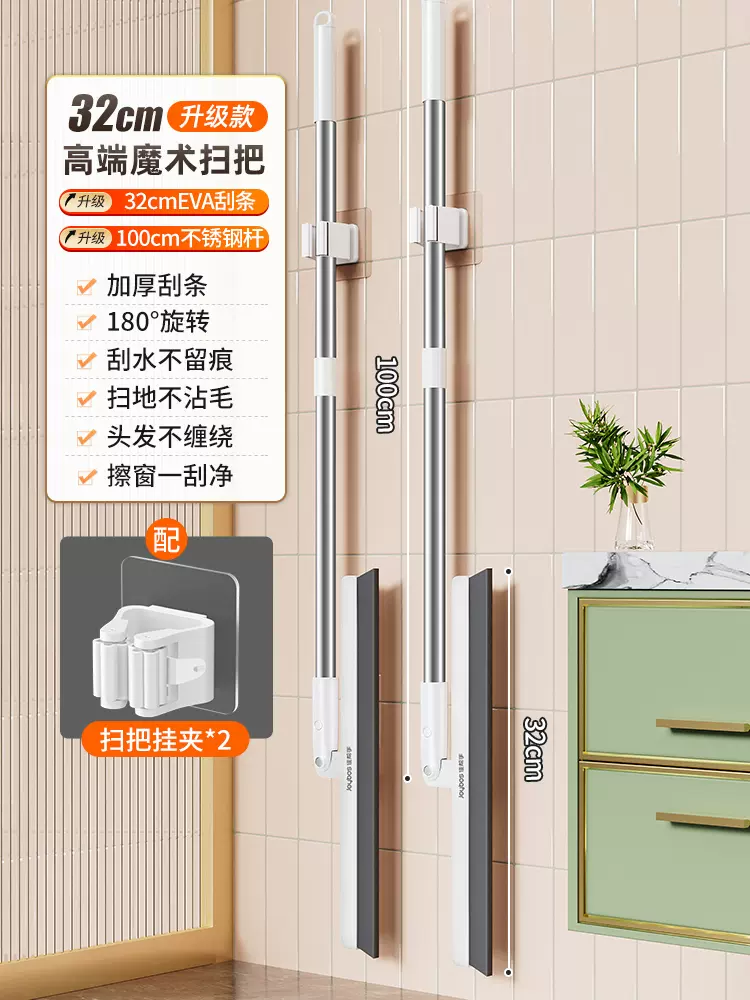 加厚刮水亮洁如新佳帮手魔术扫把 [交易快照] 颜色分类:4件装【EVA加厚刮条/加长不锈钢杆】*2+壁挂夹*2