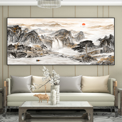 流水生财靠山图沙发背景墙装饰画 [交易快照] 颜色分类:12款-流水生财组合形式:【防水防霉】高清平面画尺寸:连框尺寸:140*60CM【顺丰包邮】外框类型:【30MM厚度】黑色铝合金边框