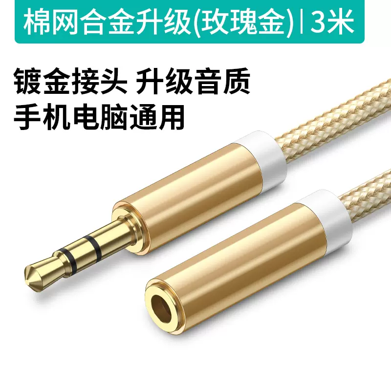 达而稳耳机延长音频线3.5mm接头 [交易快照] 颜色分类:3米【棉网合金-金色】镀金接头-无损音质