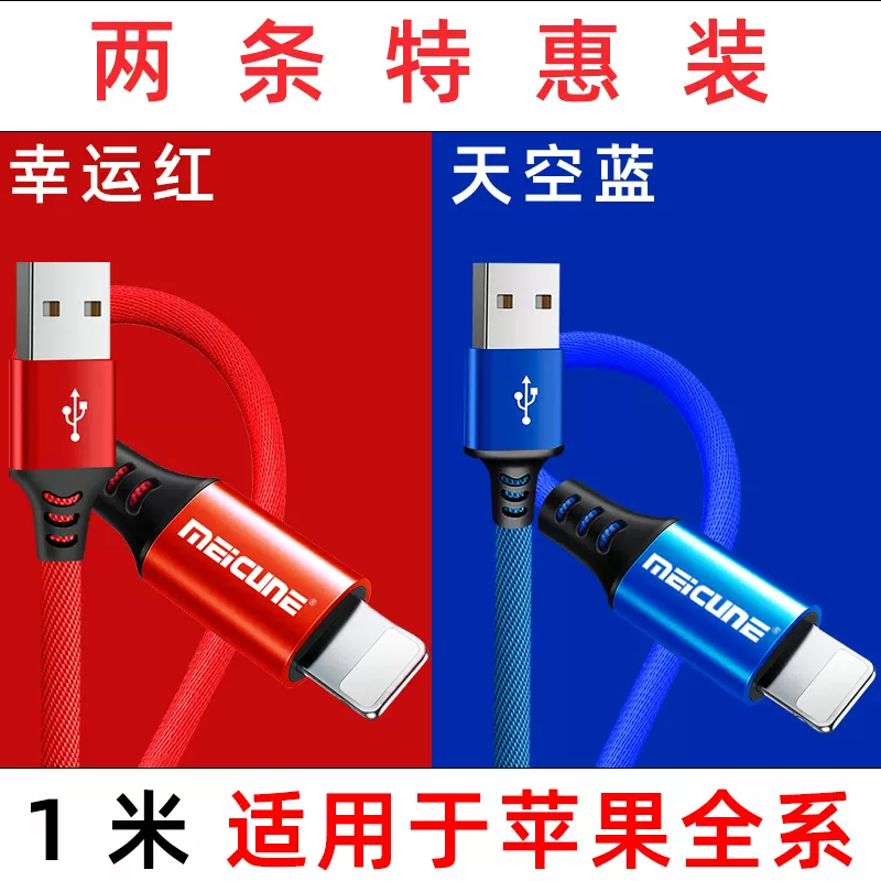 适用苹果数据线快速6s11proxs xr [交易快照] 颜色分类:1米适用苹果快充【红+蓝】【两条特惠装】