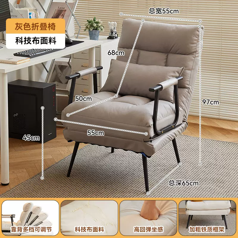 折叠躺椅办公室午休靠背沙发座椅 [交易快照] 颜色分类:升级款加厚饱满-灰色55CM-科技布【床椅两用】+赠送抱枕