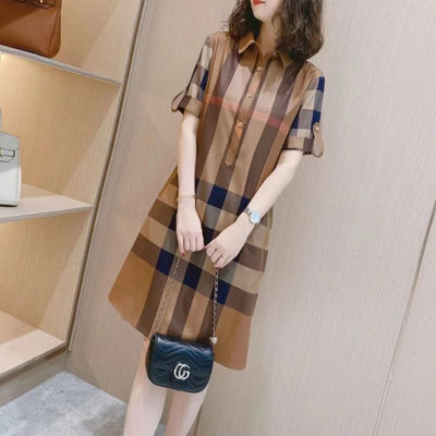 2023夏装新款欧洲站高定格子气质显瘦翻领口袋短袖衬衫裙连衣裙女 [交易快照] 颜色分类:卡其格子尺码:2XL (建议140-150斤)