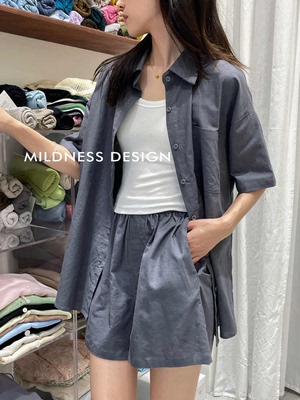 韩版小清新2023夏季新款学生亚麻宽松短袖衬衫休闲高腰短裤套装女 [交易快照] 颜色分类:灰色尺码:XXXL