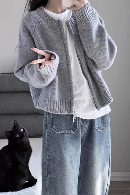 灰色短款毛衣外套女装秋冬2023新款宽松加厚拉链开衫长袖针织上衣 [交易快照] 颜色分类:灰色尺码:2XL[建议130-145斤]