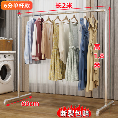 单杠式落地钢管晾衣架加厚家用 [交易快照] 颜色分类:6分单杆款长2米高2米[特粗]