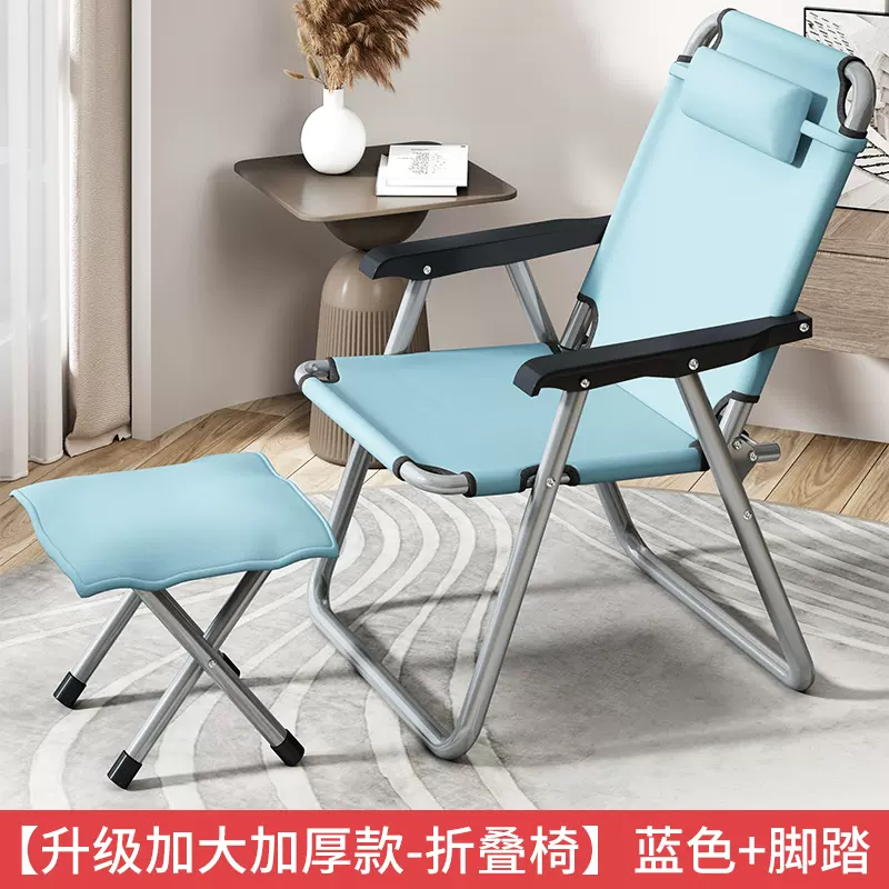 休闲沙滩椅靠椅午休折叠椅靠椅 [交易快照] 颜色分类:【升级加大加厚款-折叠椅】灰色+脚踏+送睡眠枕